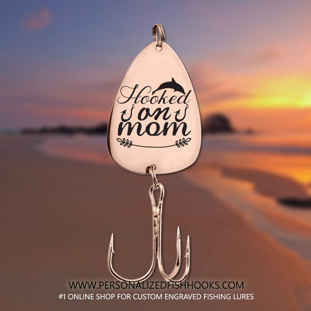 The engraving, "Hooked on Mom", is permanently etched with precision, ensuring a long-lasting, polished finish that won’t fade over time. Whether your mom is an avid angler or someone who simply enjoys spending time by the water, this personalized hook is a heartfelt and unique way to show your love and appreciation.