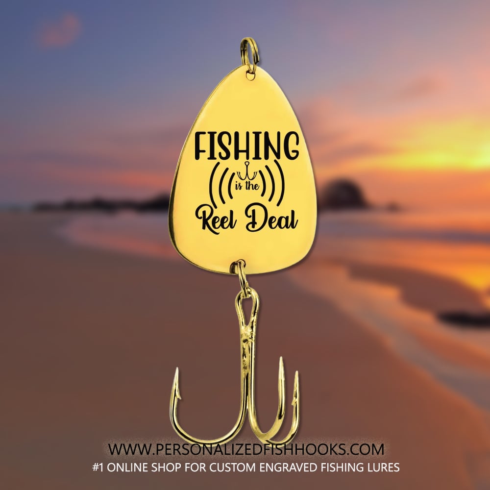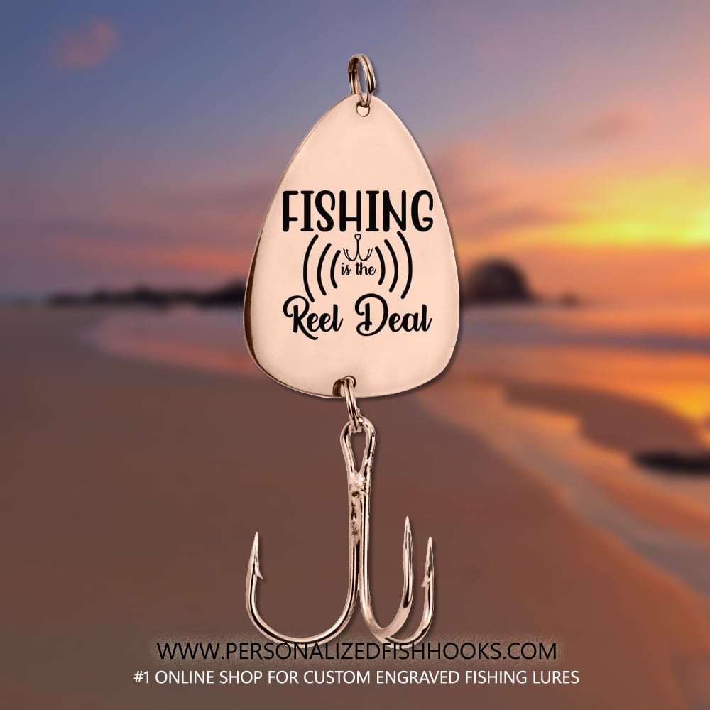 The permanently etched phrase, "Fishing Reel Deal", adds a fun and confident touch, making it a memorable piece for any fishing enthusiast. Use it as part of your fishing gear, a display item, or a unique keychain charm to show your love for the sport wherever you go.